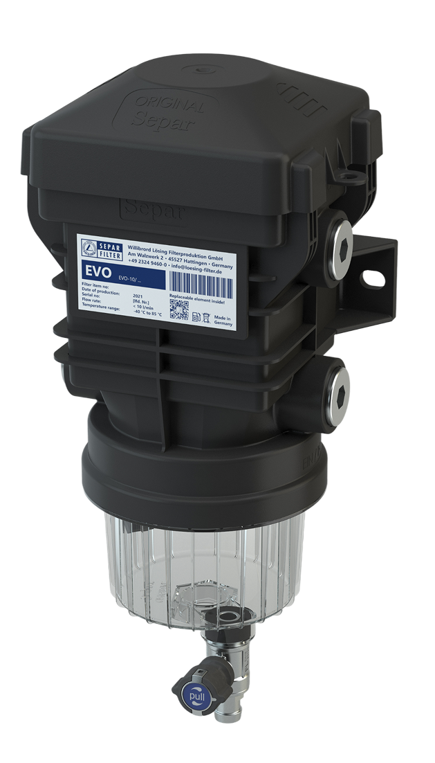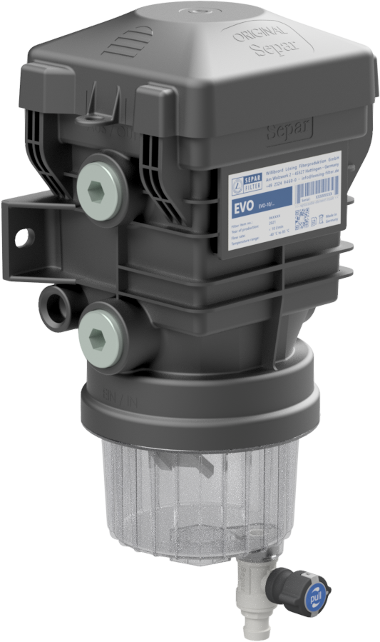 Der EVO ist für Volumenströme bis 10 l/min ausgelegt und bietet damit zuverlässigen Schutz vor Wasser und Schmutz im Kraftstoff – kompakt, leistungsstark und vielseitig einsetzbar.